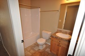 The master bedroom offers tons of functional space, custom paint, a walk-in closet, and the privacy of an attached master bath. In the master bath you’ll find ample cupboard space, granite counter-tops, & a spacious tub/shower combination.